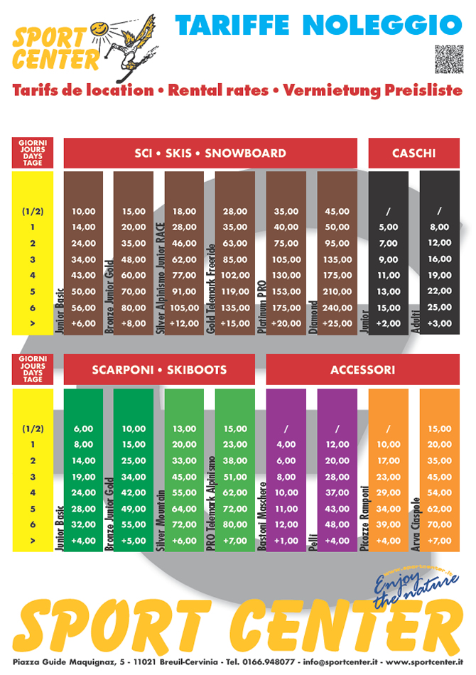 Il nostro staff preparato sarà a tua completa disposizione per consigliarti lo sci, lo snowboard, gli scarponi, i bastoncini o il casco giusto per te e farti trascorrere una vacanza pieno di divertimento in tutta comodità e sicurezza.
